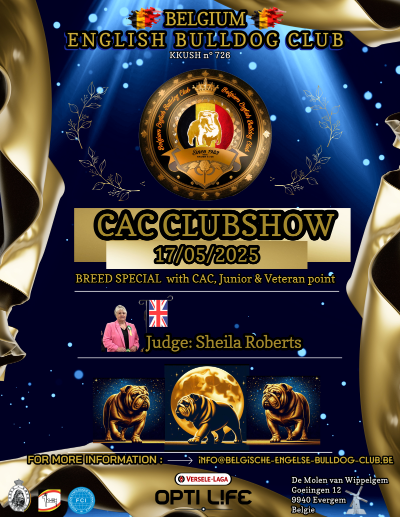 Alle eigenaars van de honden die een CAC hebben gewonnen of BOS of BOB is geworden op een BEBC evenement in het afgelopen jaar worden gecontacteerd door de Belgische Engelse Bulldog Club dat u kunt deelnemen aan dit evenement.